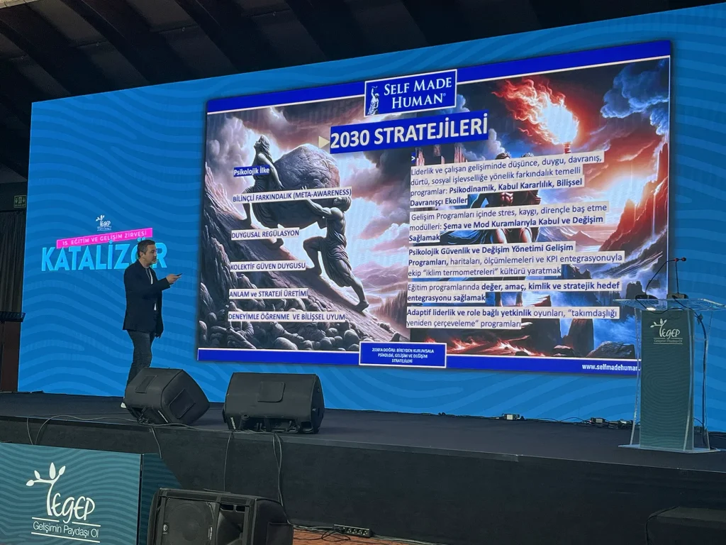 Tegep 14. Eğitim ve Gelişim Zirvesi büyük başarıyla tamamlandı. Zirvenin ilk gününde, Self Made Human Ailesinden Uzman Klinik Psikolog Emrah Yolaç’ın ‘’Etkileşim, Değişim ve Tepkime’’ başlıklı ilham veren konuşması çok büyük beğeni topladı ve Psikolojik Güvenlik kitabımızın lansmanı yapıldı.
